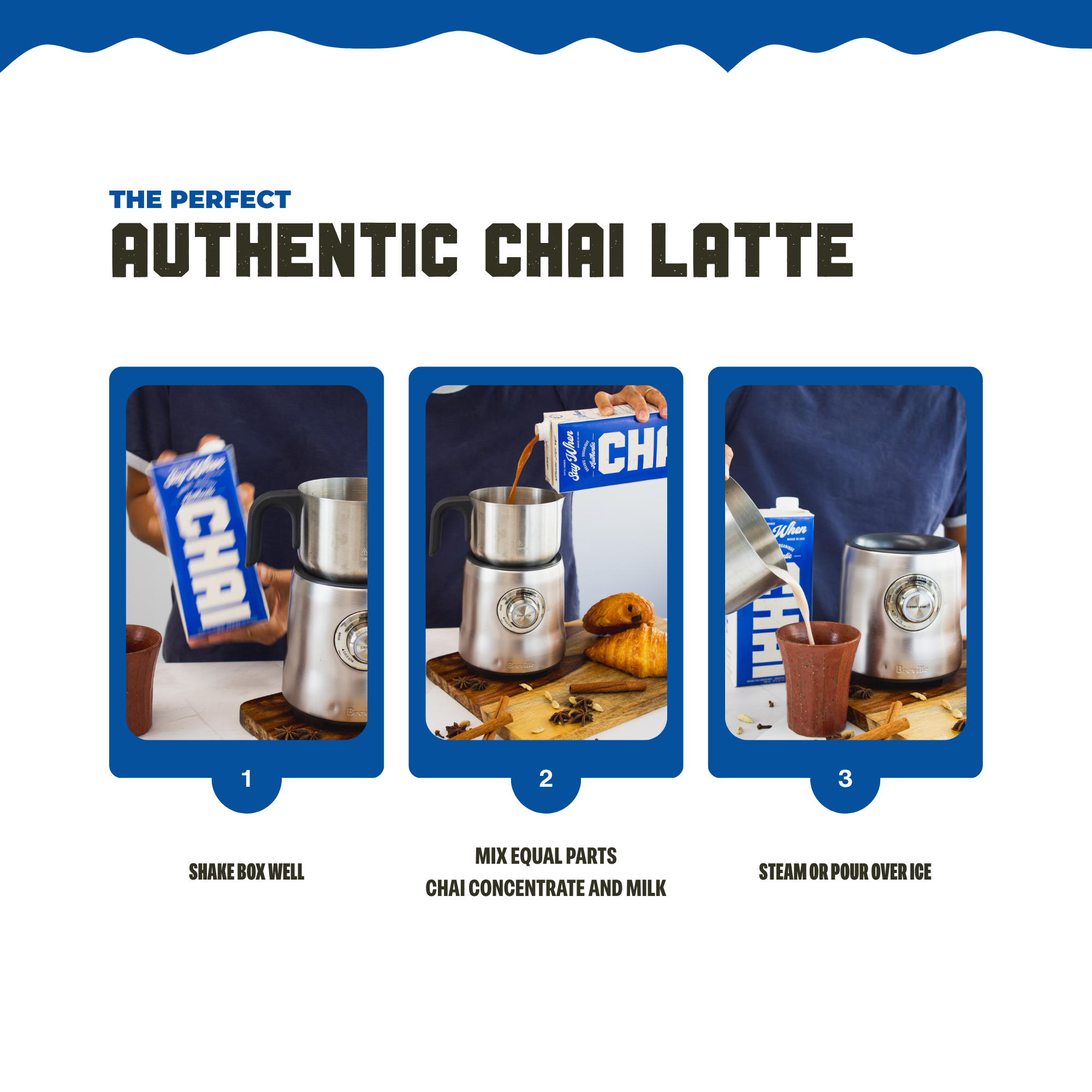 The Authentic Chai Masala from "Say When" is prepared by boiling tea with whole spices such as cardamom, cinnamon, ginger and anise long in order for the spices to release their flavor optimally. Catering packaging is a tray of 12 packs.