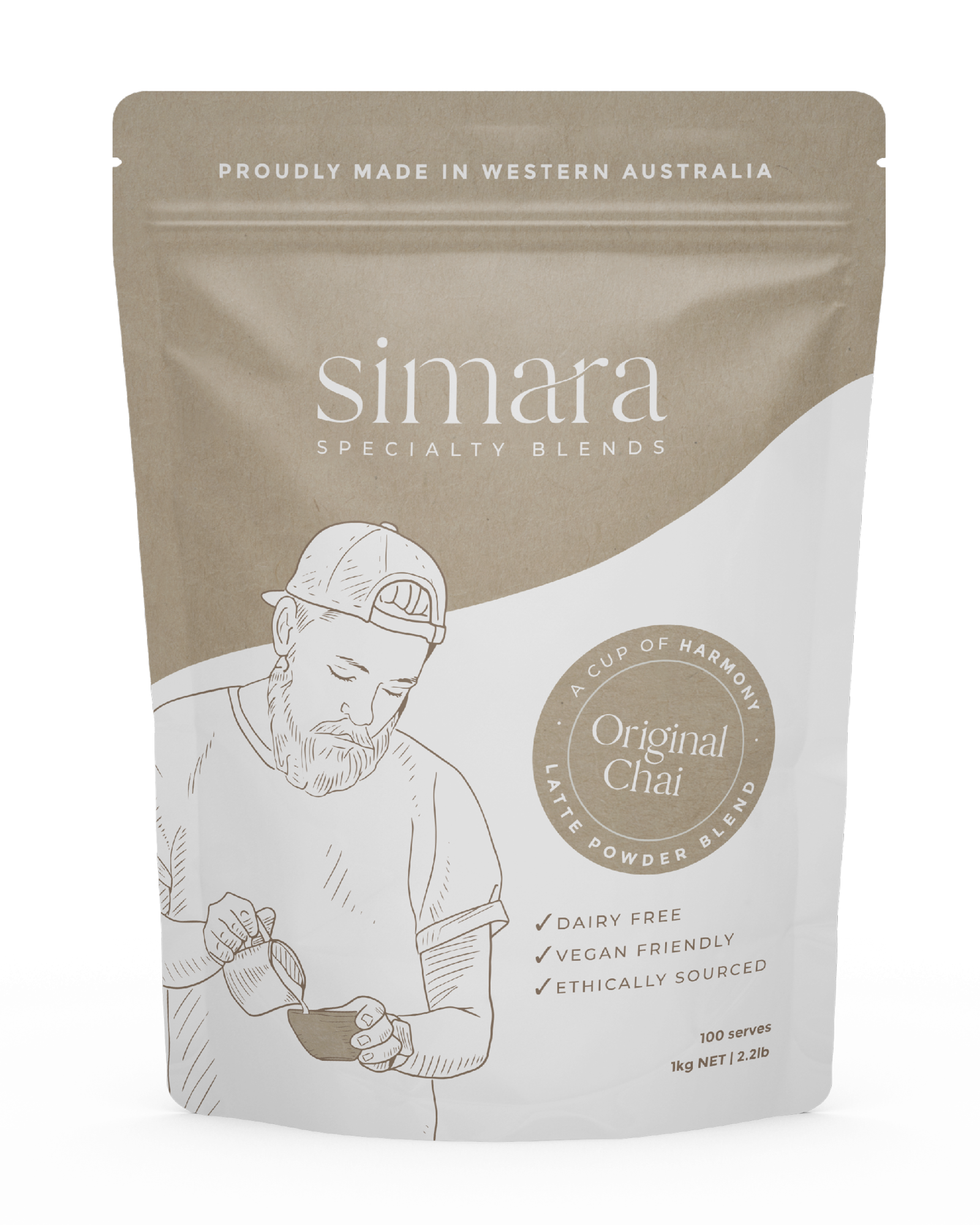 Deze Chai Latte Vegan Blend van Simara is bereid met kaneel, gember, kardemom en kruidnagel. Een heerlijk zachte Chai Latte, die bij het drinken langzaam steeds pittiger wordt. Bereidingswijze warm: Doe 2 à 3 theelepels (5 gram) Simara Colour Latte in een glas of cappuccinokom en voeg een beetje heet water toe. Roer goed door en voeg vervolgens opgeschuimde melk (in latte art!) naar keuze toe.